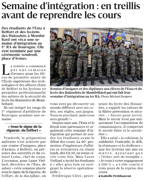"Une rentrée militaire à l'ESTA" - 01/09/2023 - L'Est Républicain