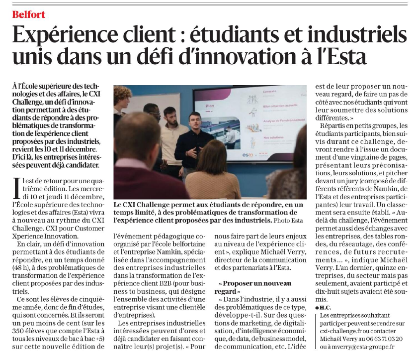 "114 étudiants de l'Esta prennent part à un challenge d'innovation" - 13/01/2024 - L'Est Républicain