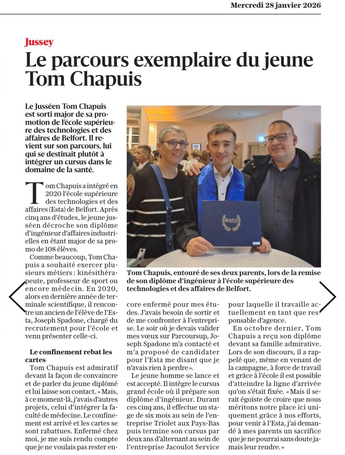 “Le parcours exemplaire du jeune Tom Chapuis” - 28/01/2026 - L'Est Républicain