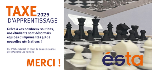 L'an passé, avec le soutien de plus de 1 400 entreprises, l'ESTA a pu moderniser ses espaces grâce à l'acquisition de plusieurs imprimantes 3D qui permettent à nos étudiants de prototyper leurs projets.